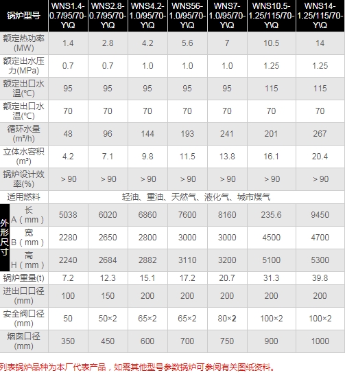 WNS系列全自動(dòng)燃油(燃?xì)猓┱羝崴仩t是一種臥式三回程火管鍋爐。其主要結(jié)構(gòu)由鍋殼、爐膽、轉(zhuǎn)向煙室、煙管等組成。鍋爐適用輕油、重油、天然氣、液化氣、城市煤氣等燃料。